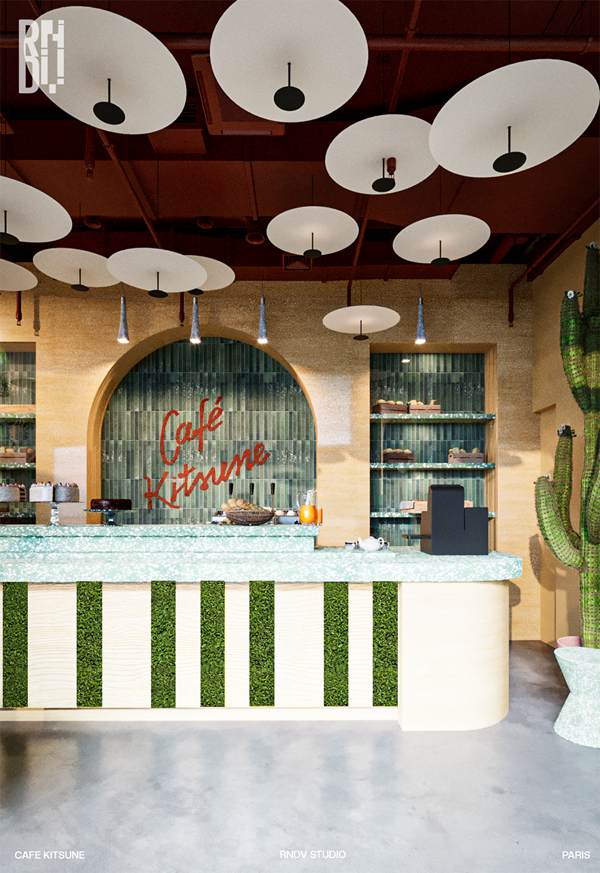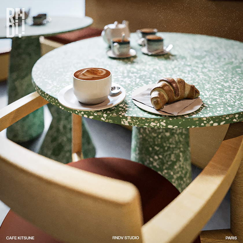 The space is decorated in warm materials and features kit kat tiles details reminiscent of those typically found in mid-century eateries. Tiles in green, terrazzo countertop and tables, again nodding to the 1970s in both colour and pattern. It's a throwback to retro coffee shops.