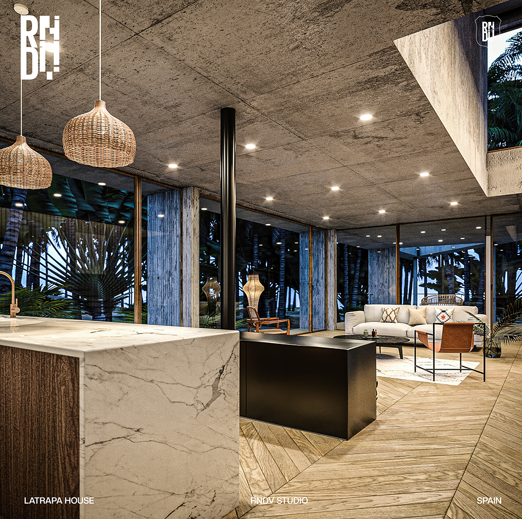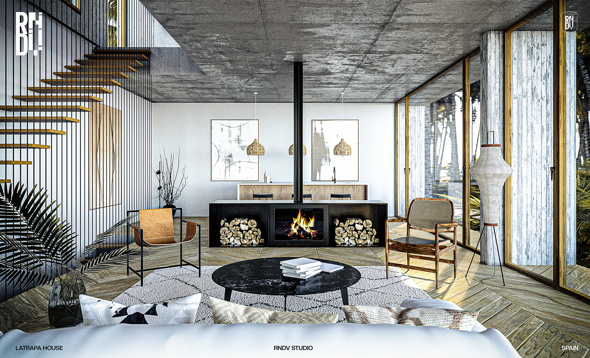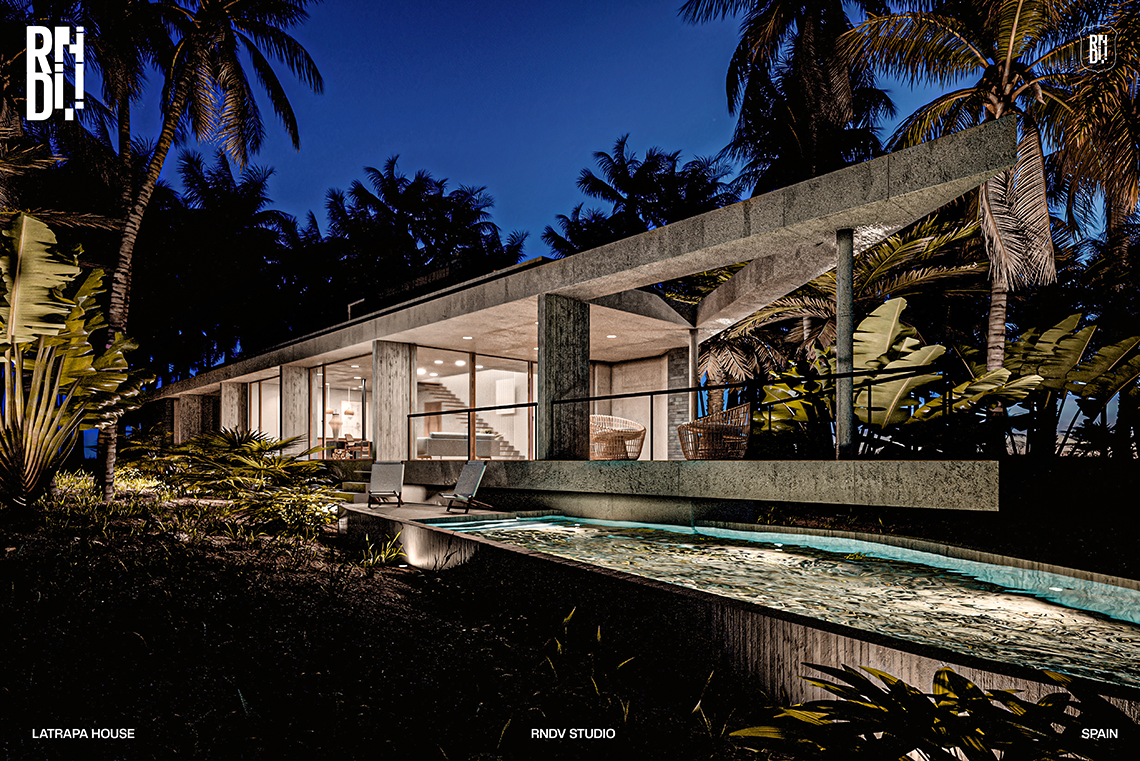The triangular architecture of this summer house located in Spain complements the surrounding greenery aesthetics, creating a serene atmosphere. The design not only enhances the green scenery aesthetics, but also creates a unique living space that feels open and airy. Open layout, large windows invite natural light, making this home a true family retreat.