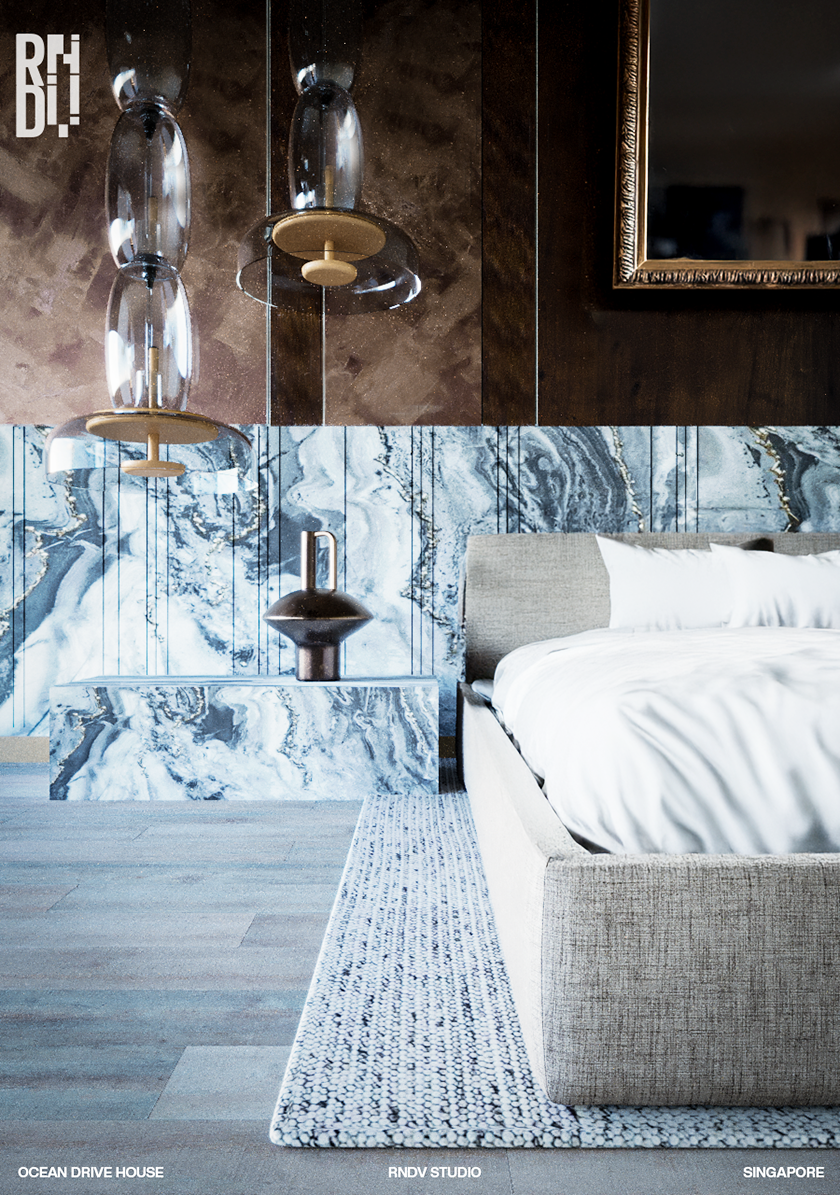 A key goal for the design was to "bring the outside in", with expansive glass doors and windows incorporated on each side of the volume, filling the space with natural light. Incorporate marble finishes, adding timeless charm and a quiet luxury aesthetic to the home.